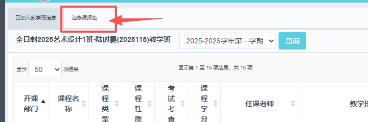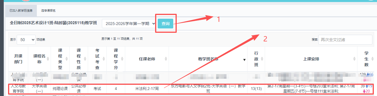 9.點擊“查詢”按鈕,確認是否已經(jīng)加入教學(xué)班
